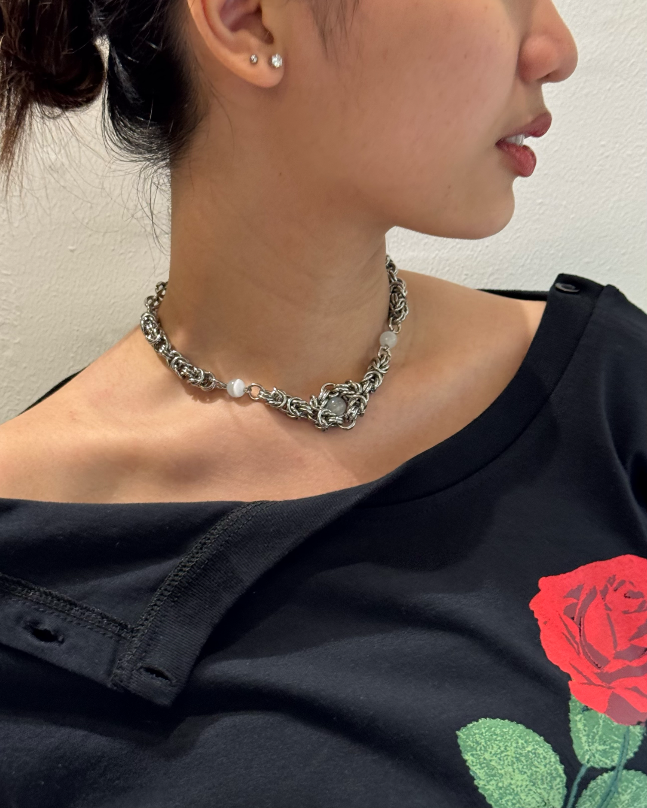 Made with Resin, Stainless Steel Ring & Stainless Steel Components. Cut & Constructed in Bekasi Length: Adjustable 14”-16” / -+ 35CM-40CM (You Can Ask For Chain Expander, If You Need Longer Size) Care Tips How to Care for Your Jewelry 1. Clean your jewelry regularly. Your own sweat and body oils can dull the shine of your jewelry. You can use a polishing cloth and rub gently on your jewelry. Polishing Cloths we recommend: https://shopee.co.id/TOWN-TALK-Polish-100-Original-SILVER-Polishing-Cloth-i.399348626.5282857728?sp_atk=ad1a6265-0a35-4f50-917c-c01d9b5db36c&xptdk=ad1a6265-0a35-4f50-917c-c01d9b5db36c 2. Store jewelry in a clean dry place. Keep your pieces in a fabric lined jewelry case, or in a box with compartments and dividers to prevent pieces from scratching each other. When Stainless Steel and Sterling Silver is exposed to air, the moisture and sulfur can cause tarnishing. It is important to store jewelry properly. When to Remove Your Jewelry 1. Before Swimming, Bathing, and Strenuous Activities. Salt, water, and chlorine can damage your jewelry. It can discolor metals and slowly erode the finish and polish. Add sweat to the list when it comes to Sterling Silver. 2. Before applying Sunscreen, Perfume, Cologne, Soap and Lotions. Lotion can get into the crevices of chains and prongs. Lotions create a film on your jewelry making it dull and dingy. Chemicals can leave jewelry discolored. 3. In direct sunlight. The sun can bleach certain materials.
